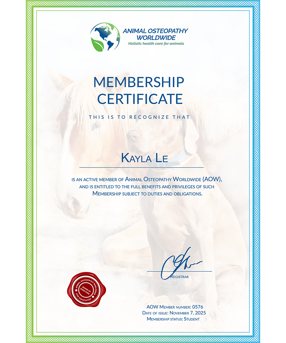 AOW strives to establish and maintain high standards of animal osteopathy through approved educational programs, standardized testing and adherence to membership code of conduct.