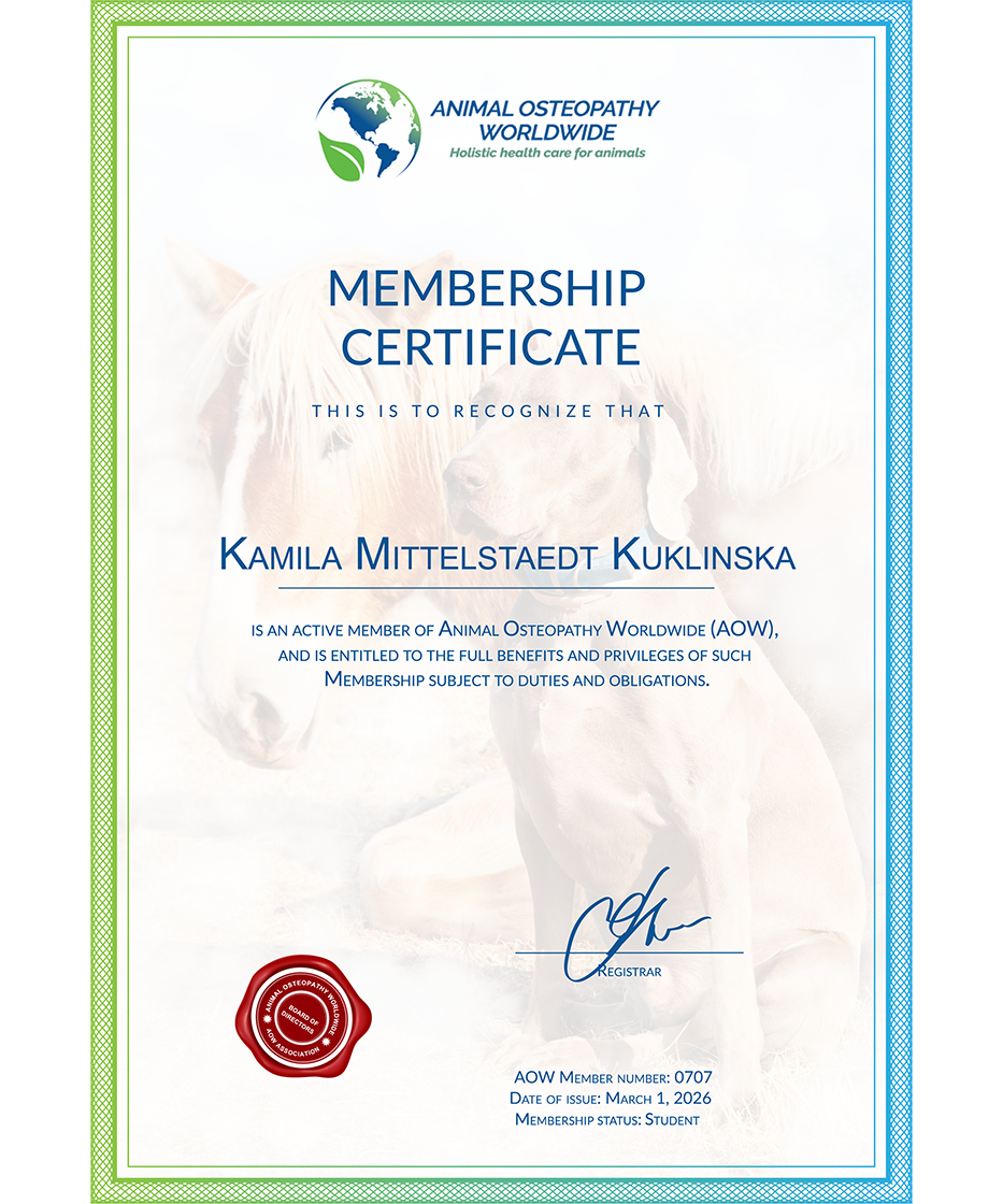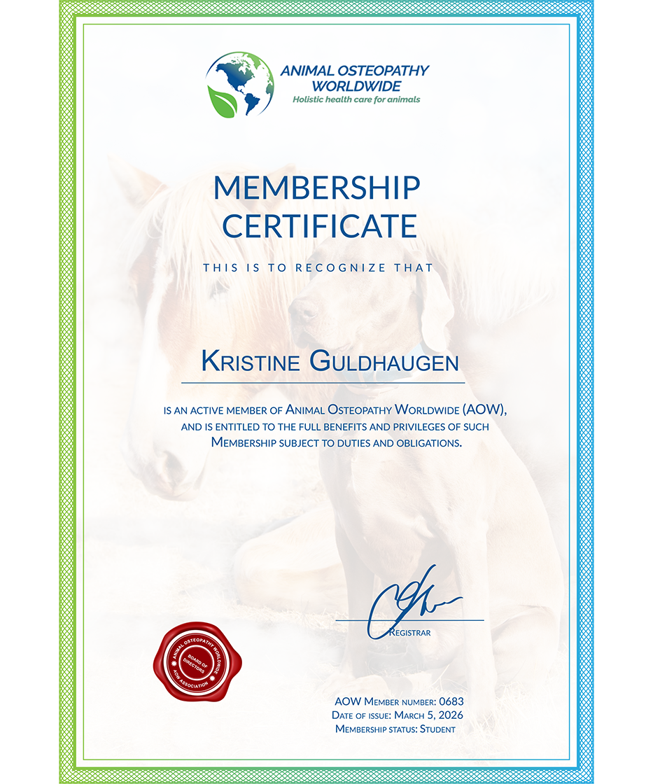 AOW strives to establish and maintain high standards of animal osteopathy through approved educational programs, standardized testing and adherence to membership code of conduct.