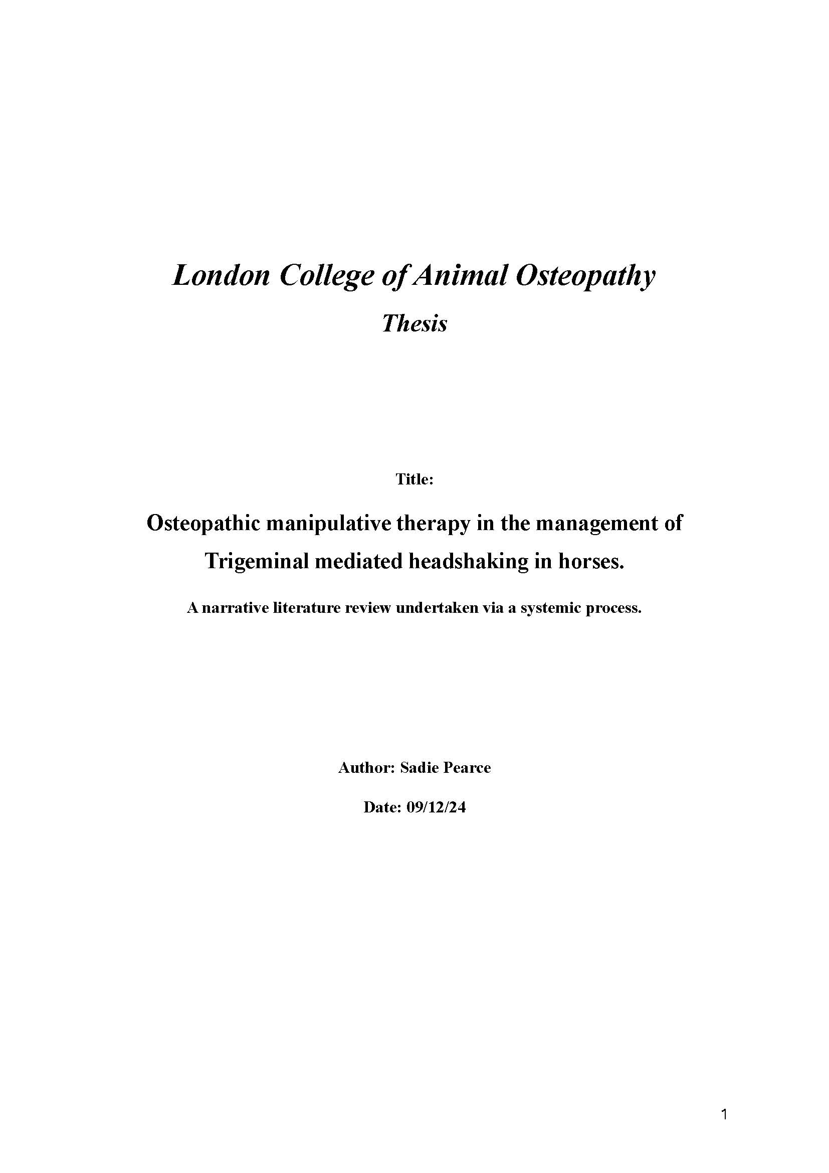 29 Sep 2025 Osteopathic Manipulative Therapy in the Management of Trigeminal Mediated Headshaking in Horses. admin 29 Sep 2025 Equine Click on the PDF below to read an outstanding narrative literature review exploring the use of osteopathic manipulative therapy in managing trigeminal-mediated headshaking in horses.